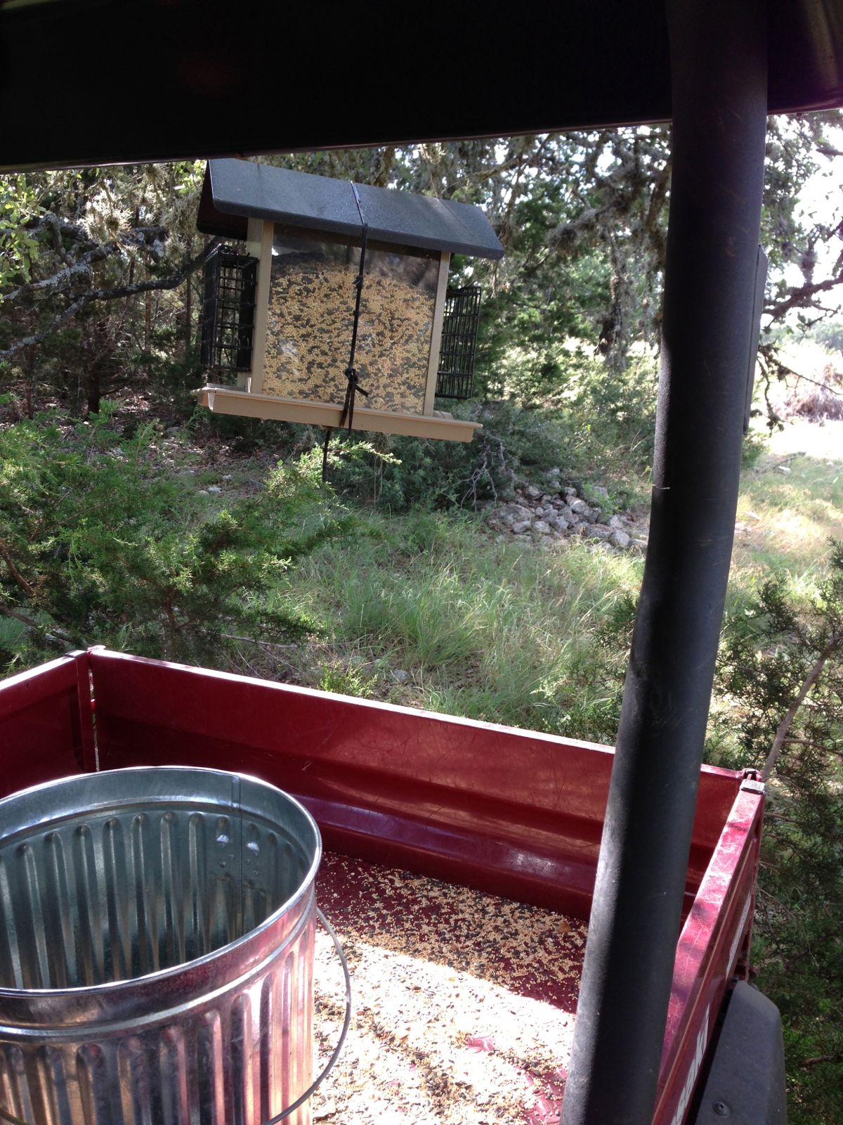 Filling bird feeders Published on June 24, 2013September 28, 2013 by Colin Never fails to amaze how sneaky the squirrels and racoons are. I had to beef up security on one of our feeders as they were emptying it overnight. Doing bi-weekly checks and fills.