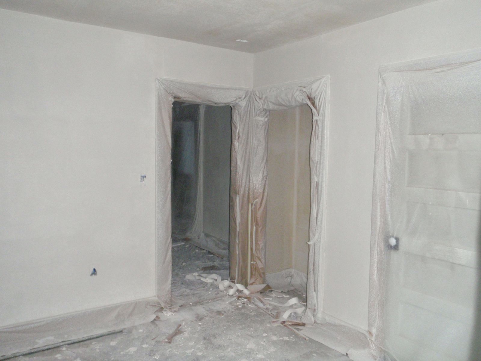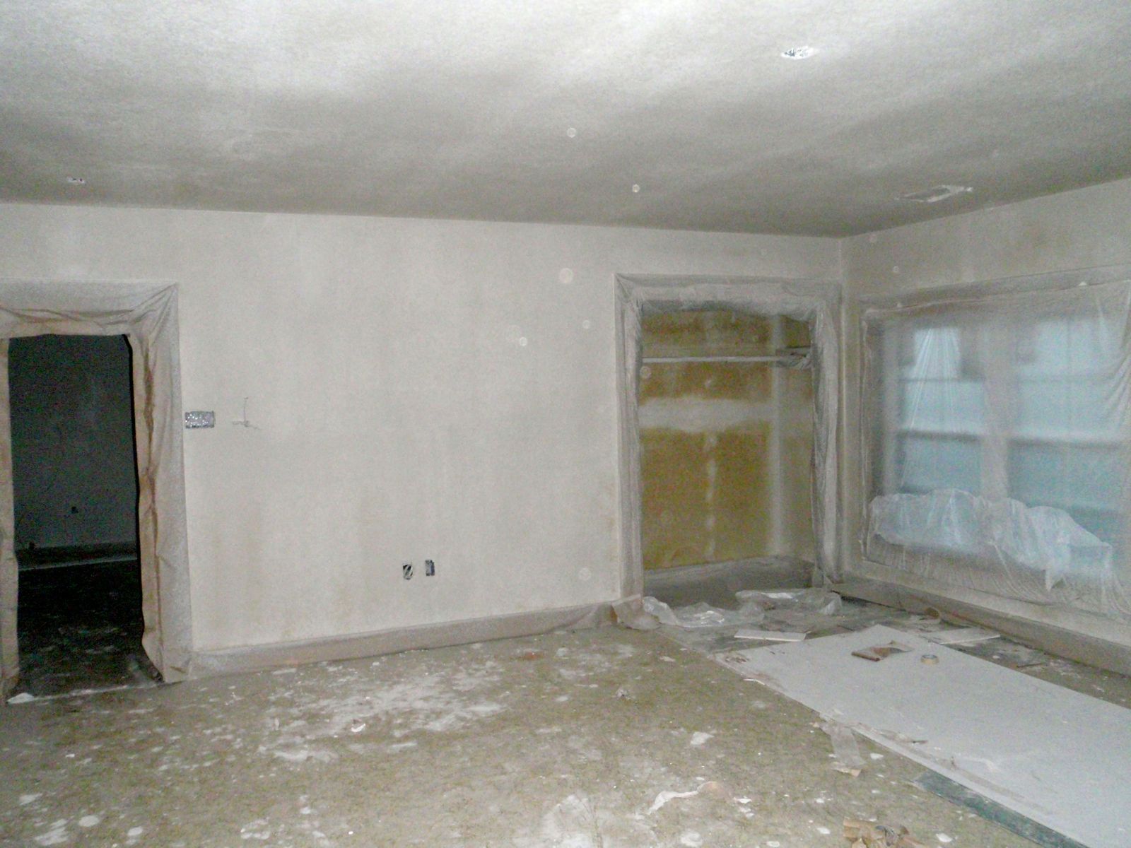 Started adding texture to walls and ceilings. We will be applying double coat orange peel to give a lightly textured finish.