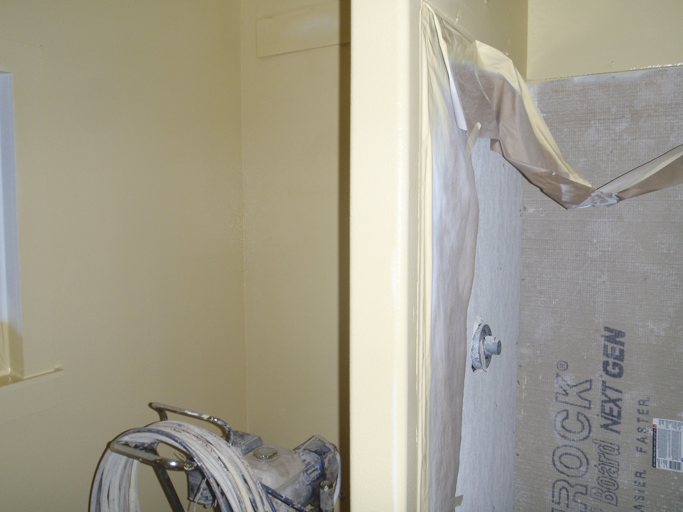 Painted Walls Published on February 27, 2011February 27, 2011 by Colin Starting to take shape – walls textured and yellow paint applied. Was expecting a little less yellow – will see once the paint dries. [Show as slideshow] Click on image to see higher resolution picture