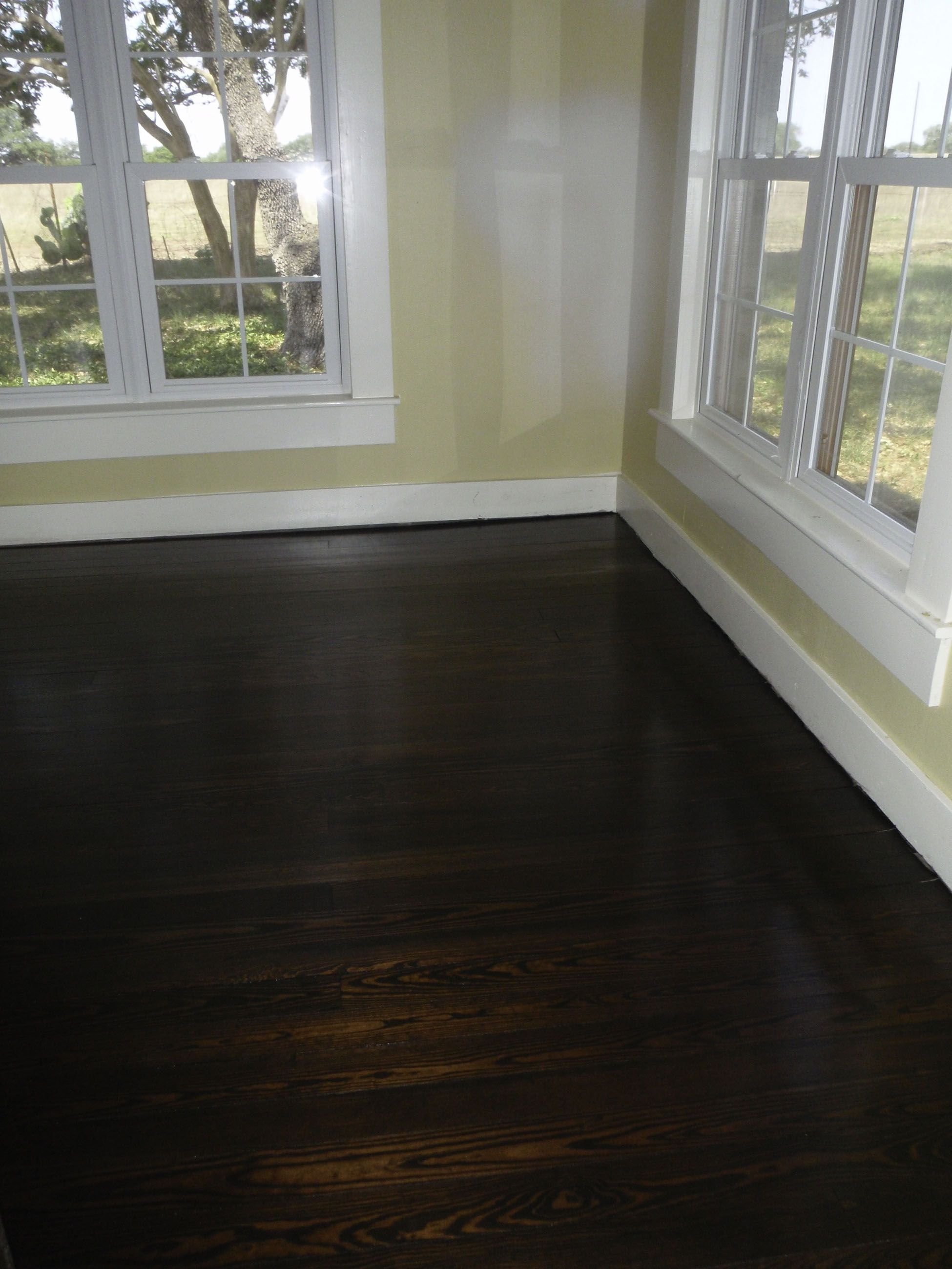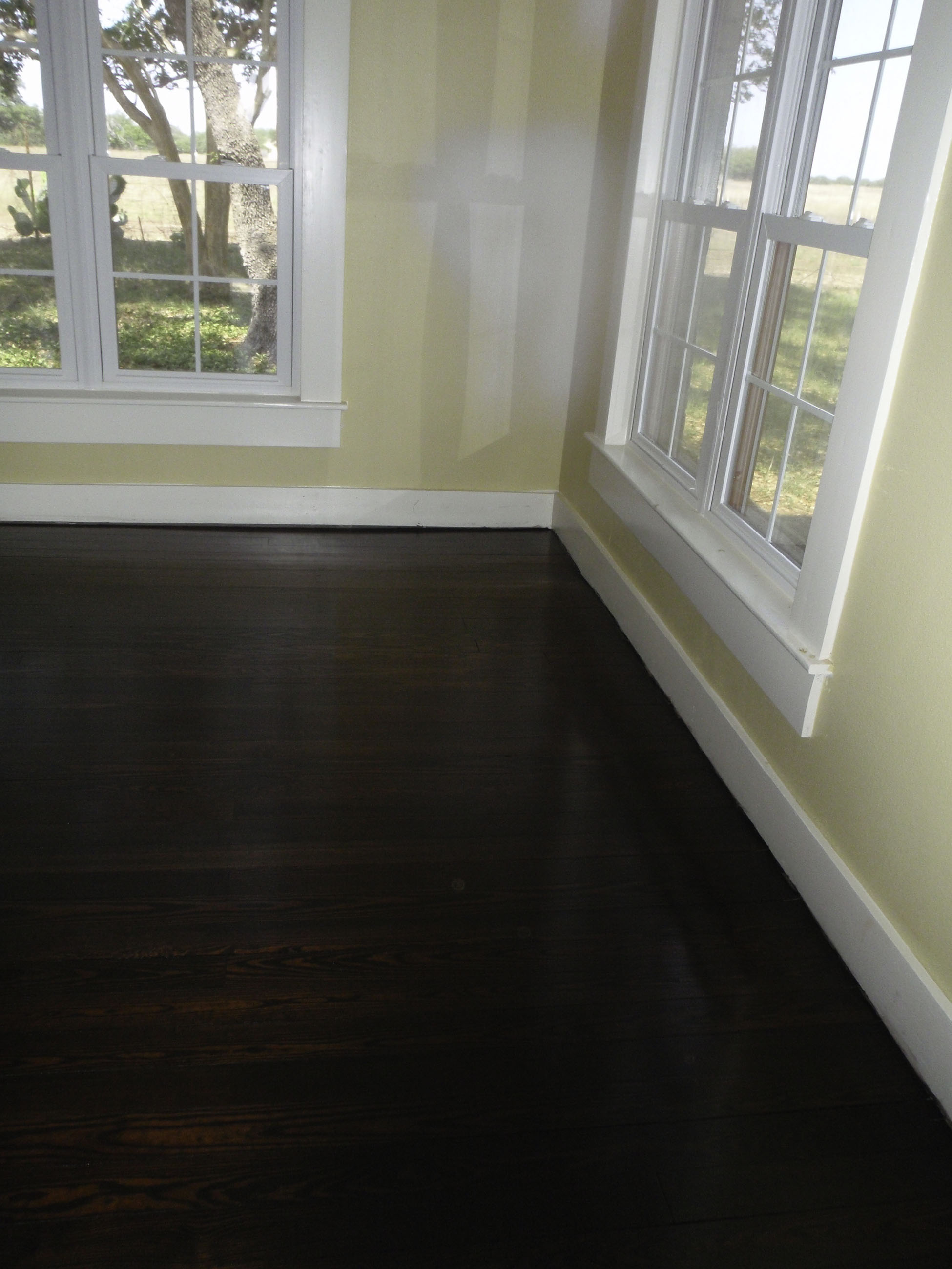 The floors really look good. They were sanded down, stained and then had a protective coat applied – can’t believe they are not new.